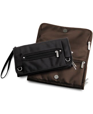 All-in-one protection for your iPad, travel essentials and your identity. Magellan's design. When it comes to versatility, few organizers can hold a candle to our elegant RFID iPad Convertible Clutch. We designed this multi-tasking marvel to give you a secure and easy way to carry your iPad and other daily necessities while staying protected from RFID theft. Loaded with smart organization, it features a padded iPad compartment, and gusseted dual-pocket clamshell wallet with passport pocket, card slots and zippered pocket in the middle. A built-in shield blocks RFID signals from 125 kHz to 13.56 MHz (the most commonly used range for credit cards, ID and passports), and it can be carried around your waist, over your shoulder, or as a stylish clutch (without the iPad). Made of durable 900-denier poly. (9 x 5¼ x 2¼ " folded; 9 x 11 x 1¼" open; 11 oz)